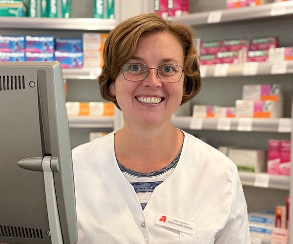 Apothekerin Halina Lischka-Güntzel legt besonderen Wert auf eine freundliche und kompetente Beratung, daher gehören zum sechsköpfigen Team drei weitere Apothekerinnen. Eine große Rolle im Kundengespräch spielt der Medikationscheck, das heißt die Überprüfung von Neben- und Wechselwirkungen der Präparate, die Sie einnehmen. Stellen wir hier Probleme fest, halten wir Rücksprache mit dem Arzt, der dann ein anderes Medikament verordnet.